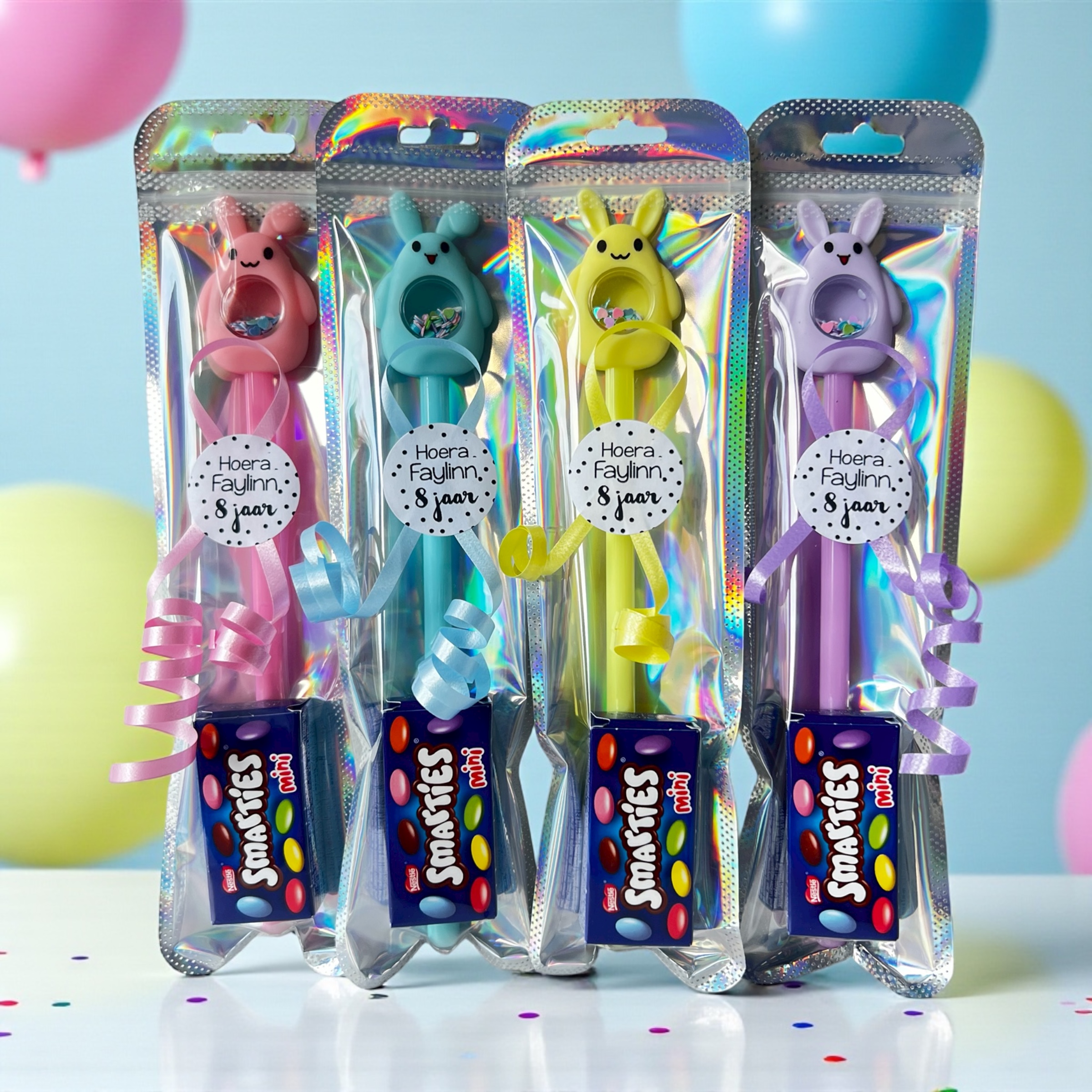 | Extra opties | Traktatie met snoepketting (+€0,30), Geen extra opties, Traktatie met rozijntjes (+€0,30), Traktatie met schatkistje (+€0,30), Traktatie met smarties (+€0,30) |