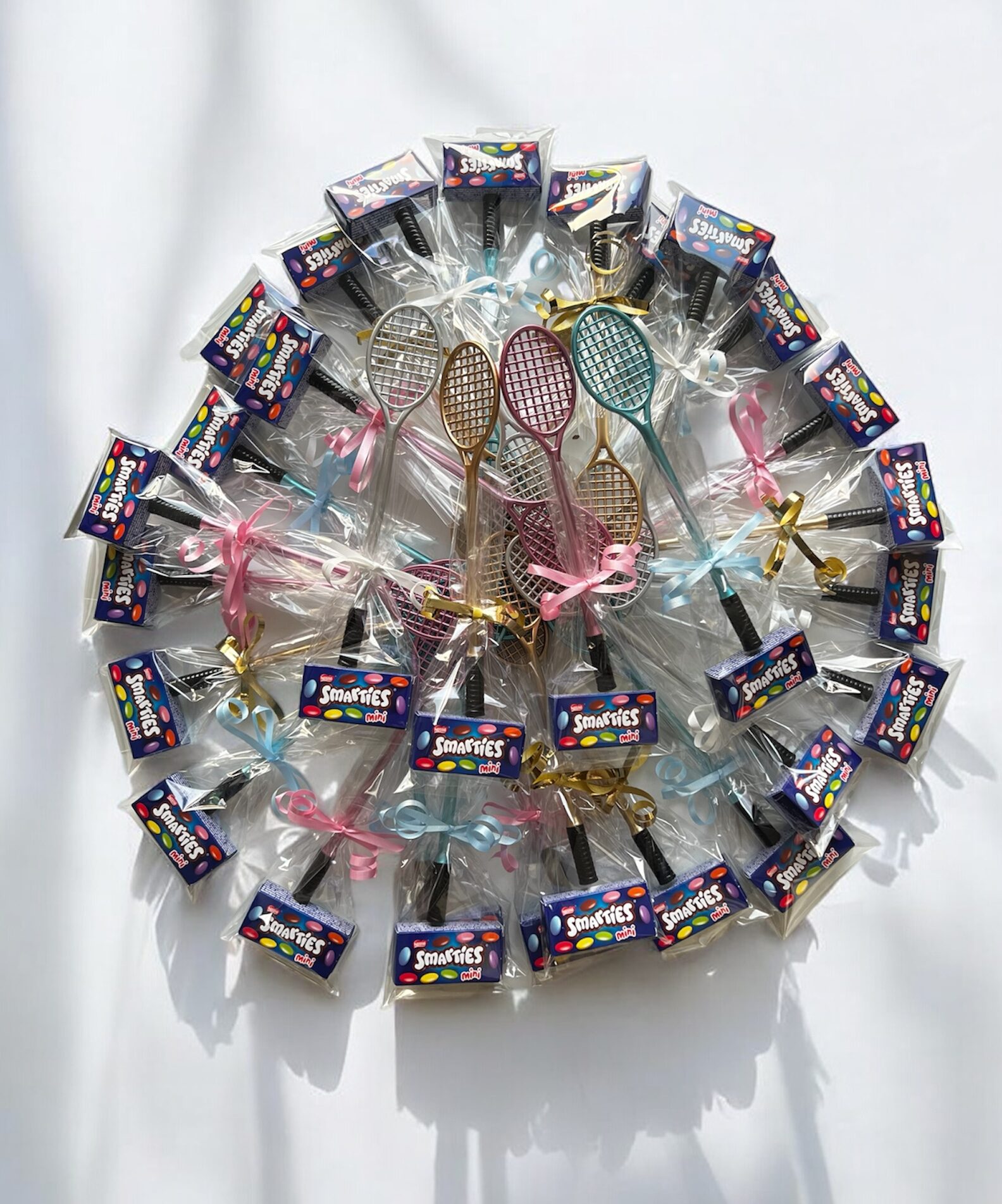 De voorverpakte traktatie bestaat uit een Sanrio 4 kleuren pen (mix van Hello Kitty, My Melody, Kuromi, Cinnamoroll, Pompompuri, Pochacco, zie foto) netjes verpakt in een zakje en optionele keuze uit Haribo-beertjes, snoepketting of Smarties